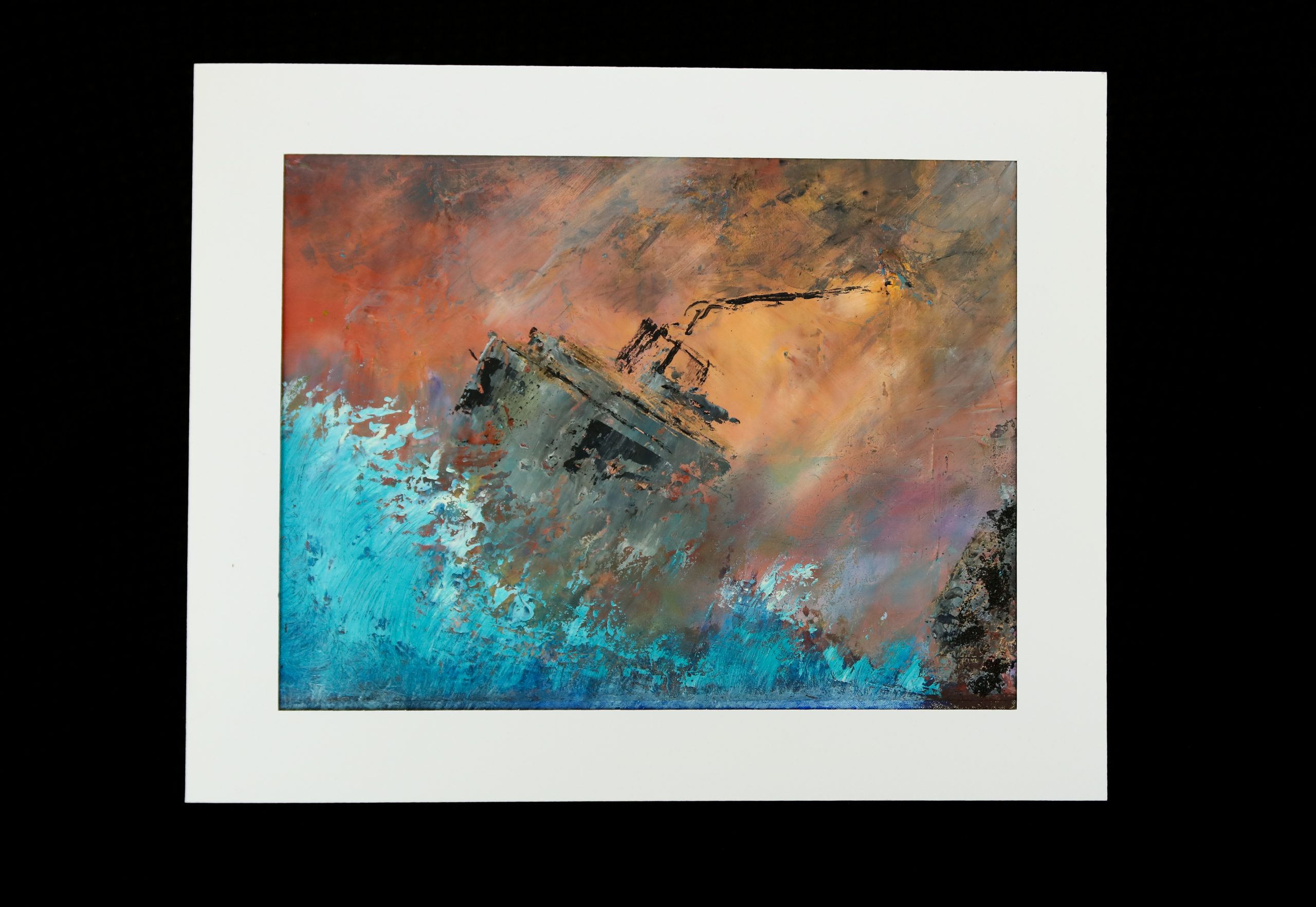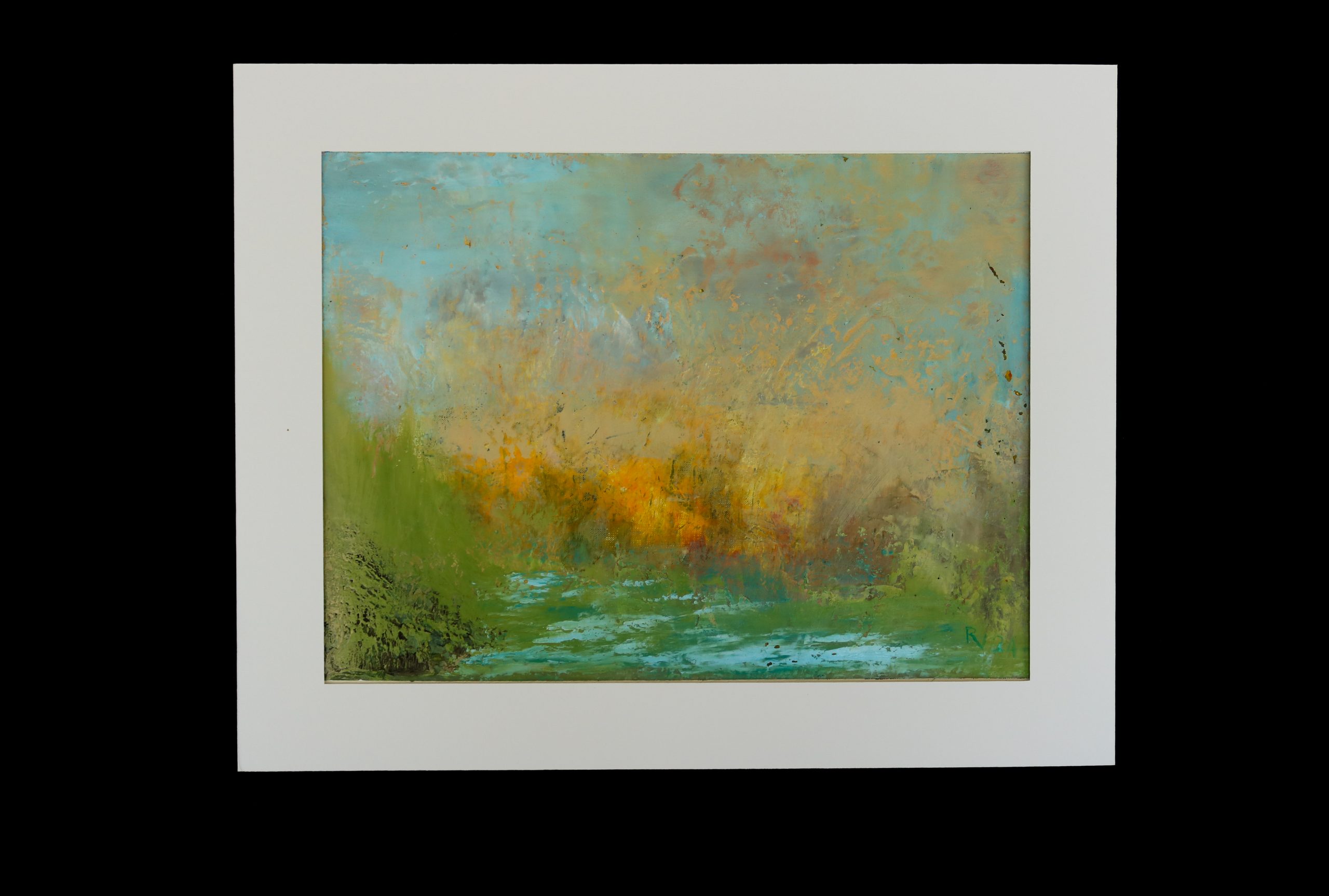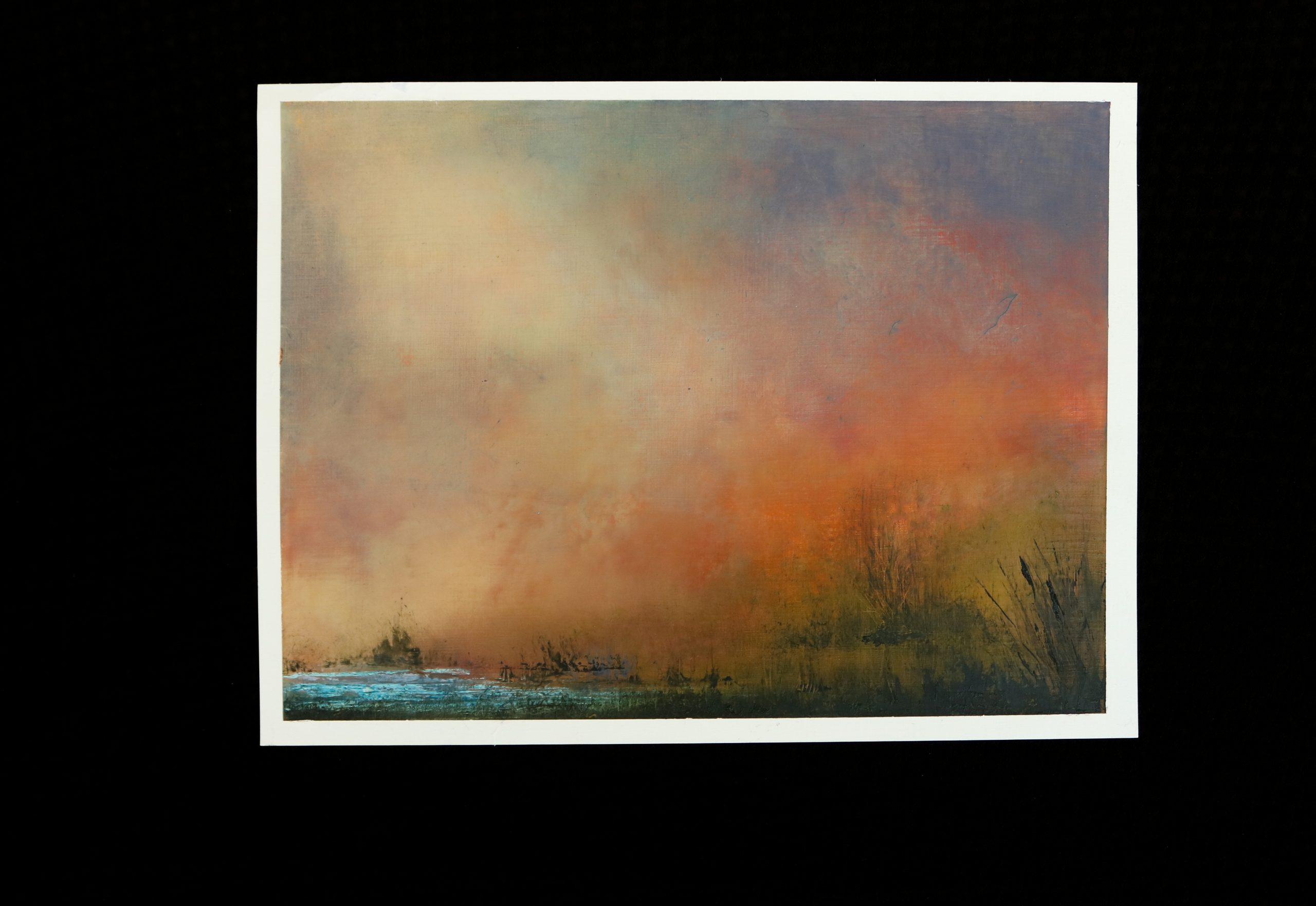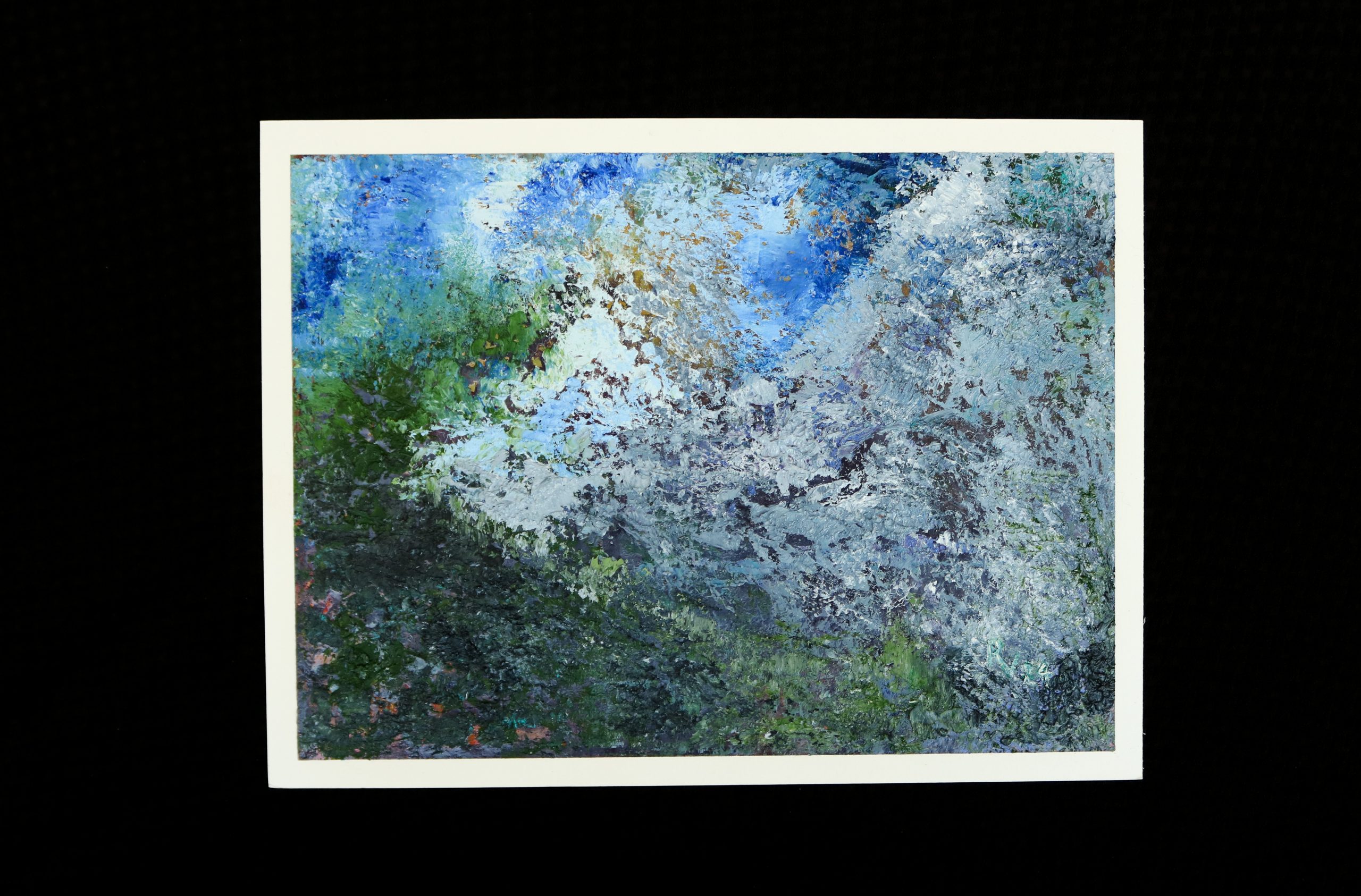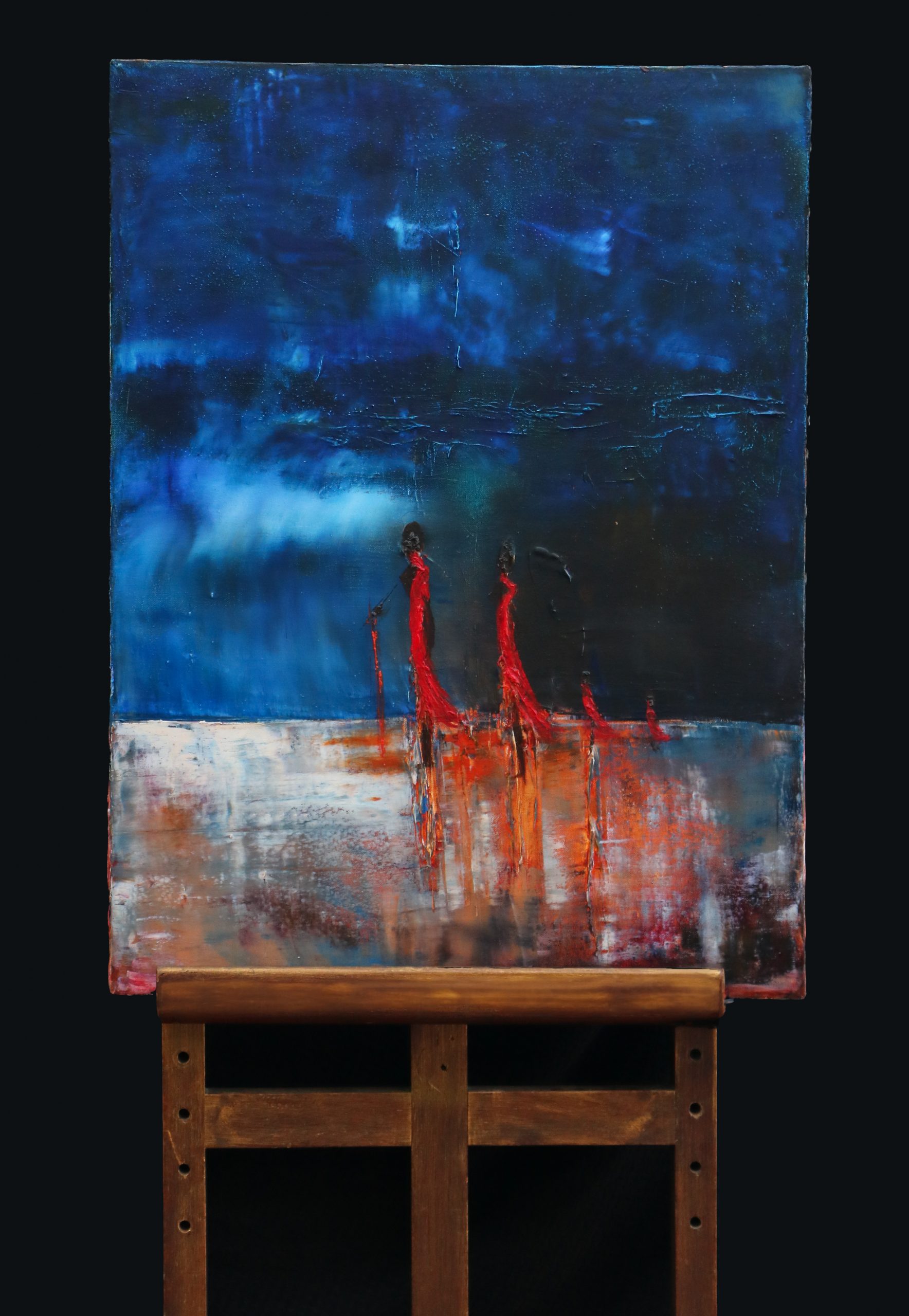 C'est une œuvre à l’atmosphère intense et évocatrice, où les couleurs et les émotions tourbillonnent comme une tempête dans une tasse de thé. Des nuances de bleu profond, de cramoisi et d’or se déploient sur la toile, capturant la turbulence du cœur humain — son désir, sa passion, sa vulnérabilité. Les formes abstraites se fondent les unes dans les autres comme des pensées dans un rêve, insaisissables mais étrangement familières. On y perçoit quelque chose qui couve sous la surface — une tempête émotionnelle peut-être, ou la douce douleur d’un souvenir. Cette peinture n’invite pas à interpréter, mais à ressentir.